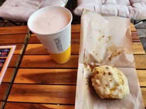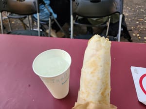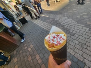 故郷出店のCONA CAFEさん、故郷発展の為にイチゴクレープ購入、少し照れます
