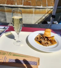 清田産「清茸」・道産鶏肉・襟裳産大ずわい蟹の甲殻コンソメ煮込み+泡ワイン