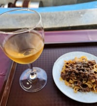 白老牛のミートソース、留萌小麦ルルロッソのタリアテッレ+ワイン